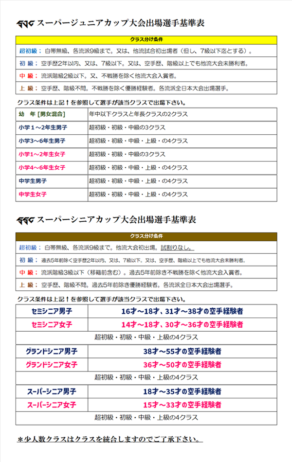 スーパージュニアカップ&スーパーシニアカップ2026出場選手クラス条件